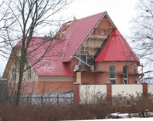 дом 25Е под кровлей из битумной черепицы и под кровлей из металлочерепицы.