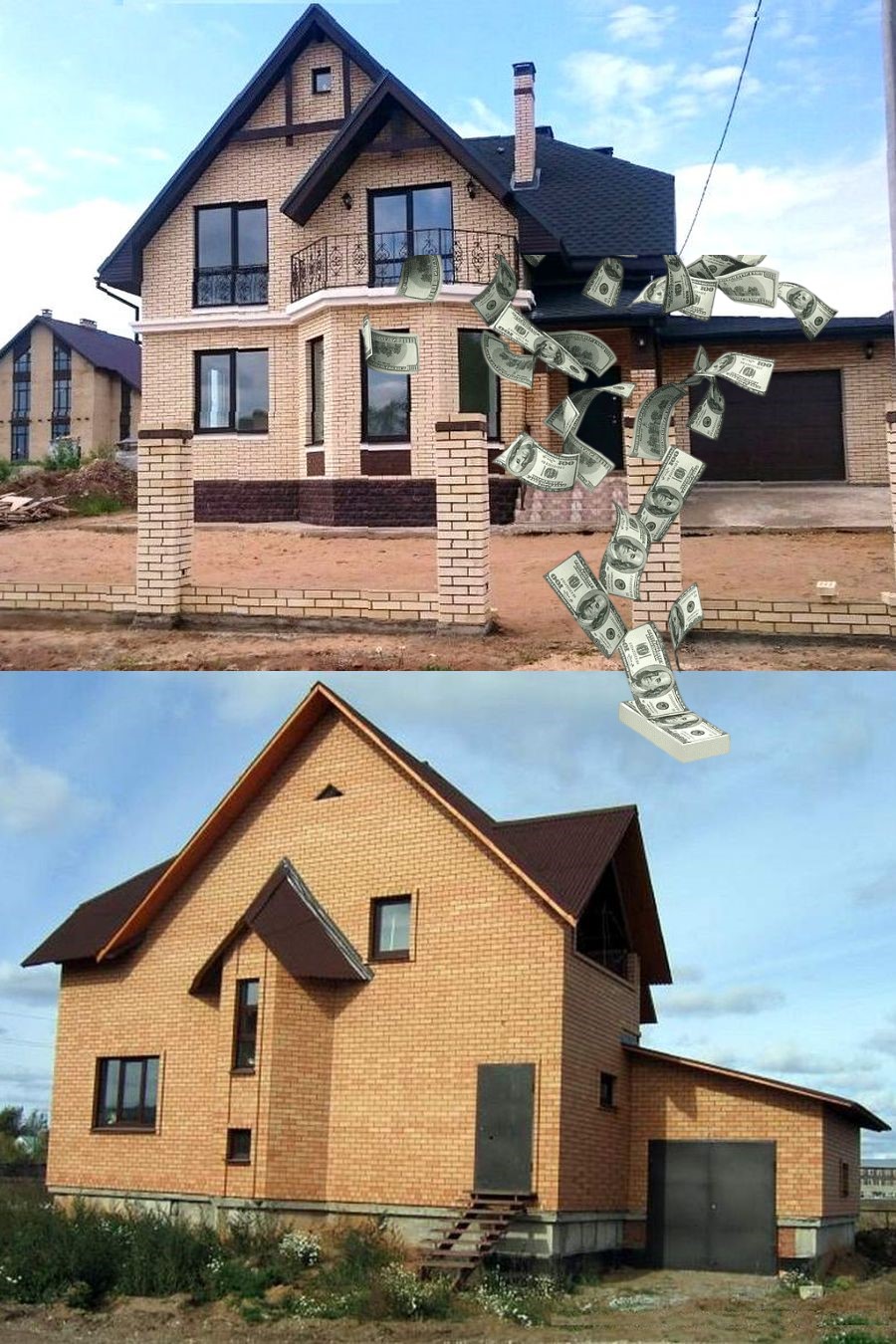 Посмотрите, пожалуйста, на фото двух разных загородных домов, которые ниже.