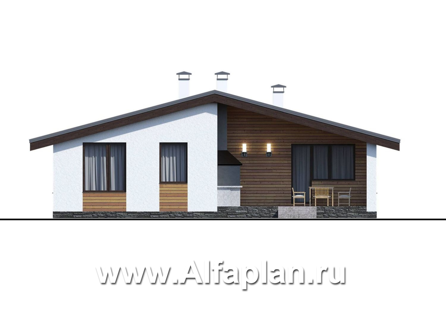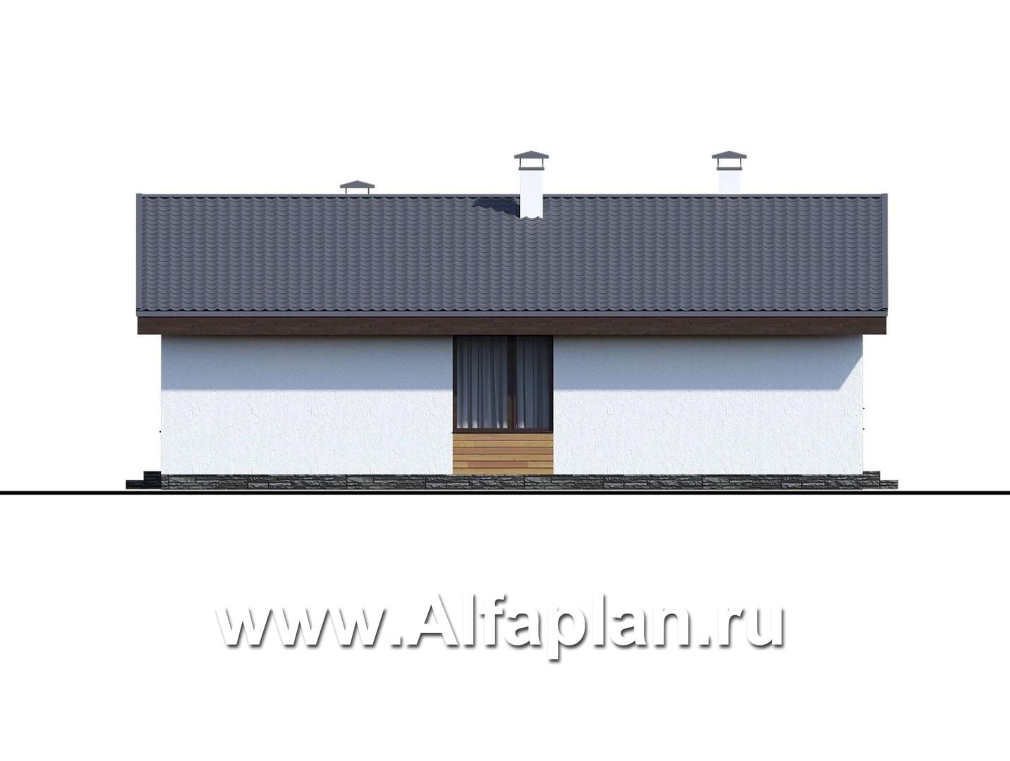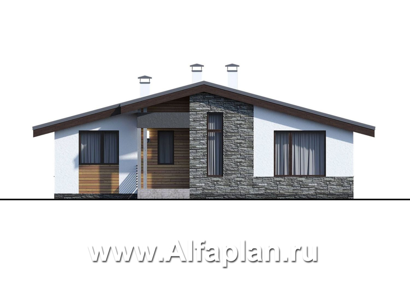 917A-2 «Калисто» - проект одноэтажного дома из газобетона, в скандинавском стиле, мастер спальня, с террасой и с островным камином