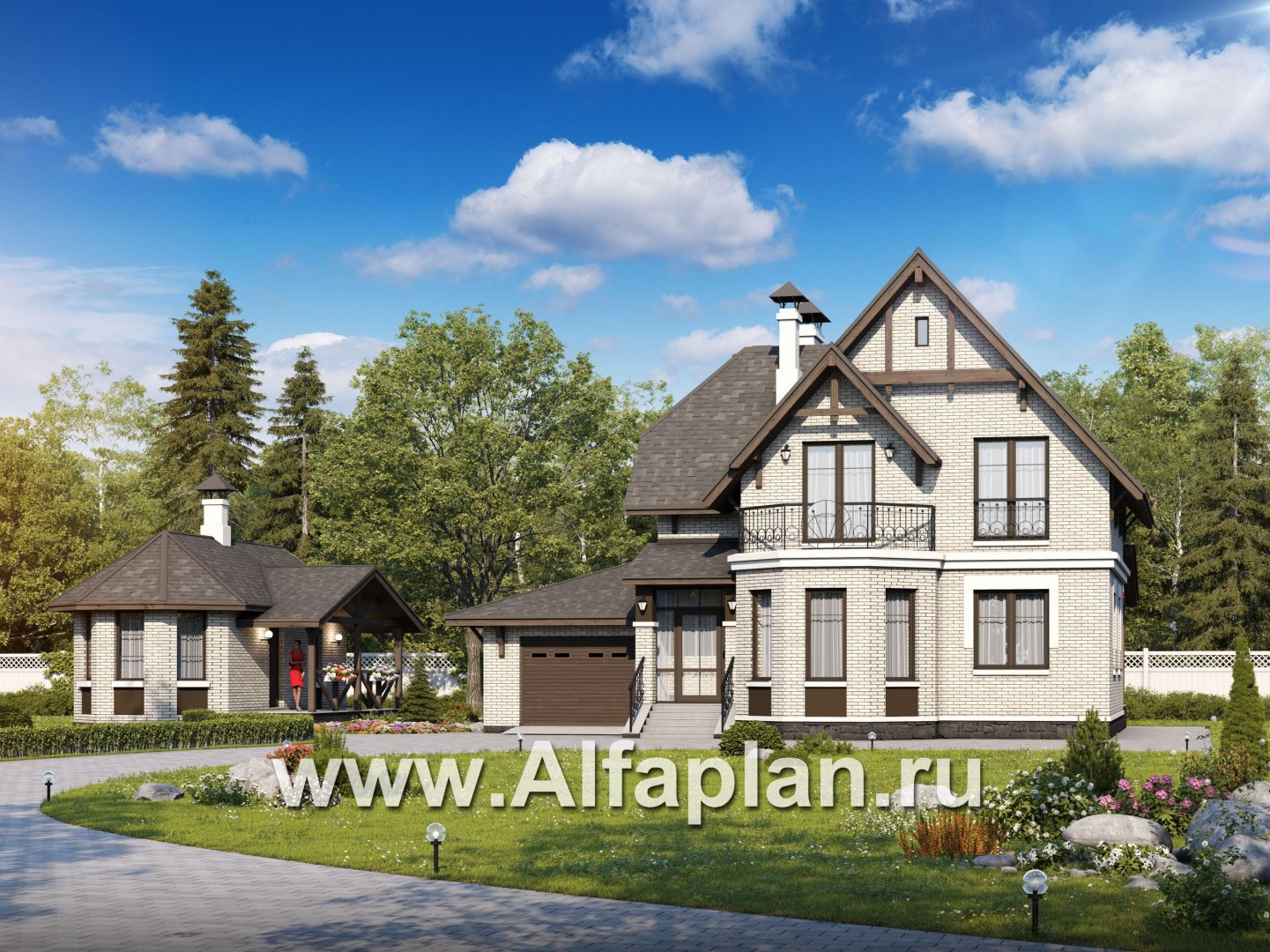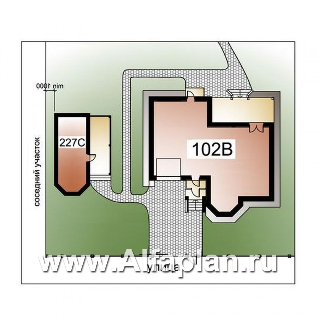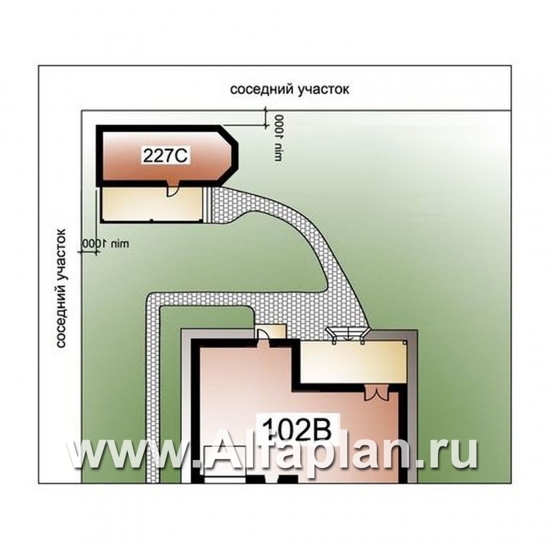 102B+227C-S «Шевалье»_ДУО - проект коттеджа с мансардой + проект бани с эркером и с террасой