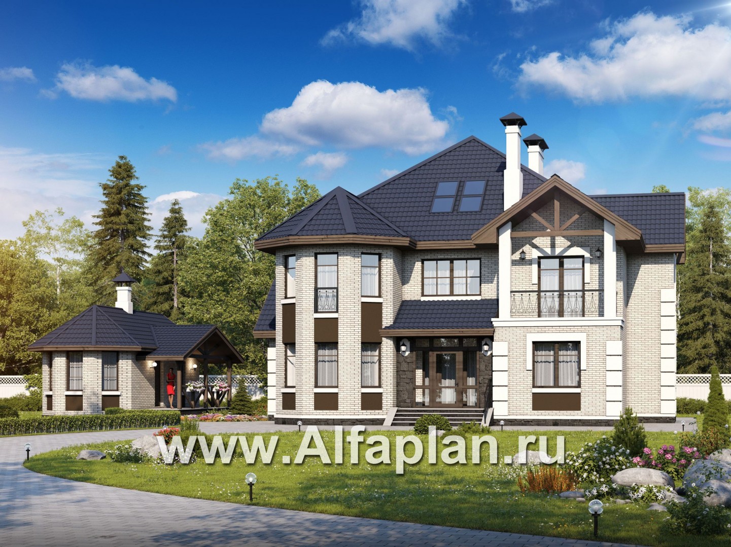 «Воронцов»_ДУО - проект двухэтажного коттеджа с эркером + проект бани с эркером и с террасой