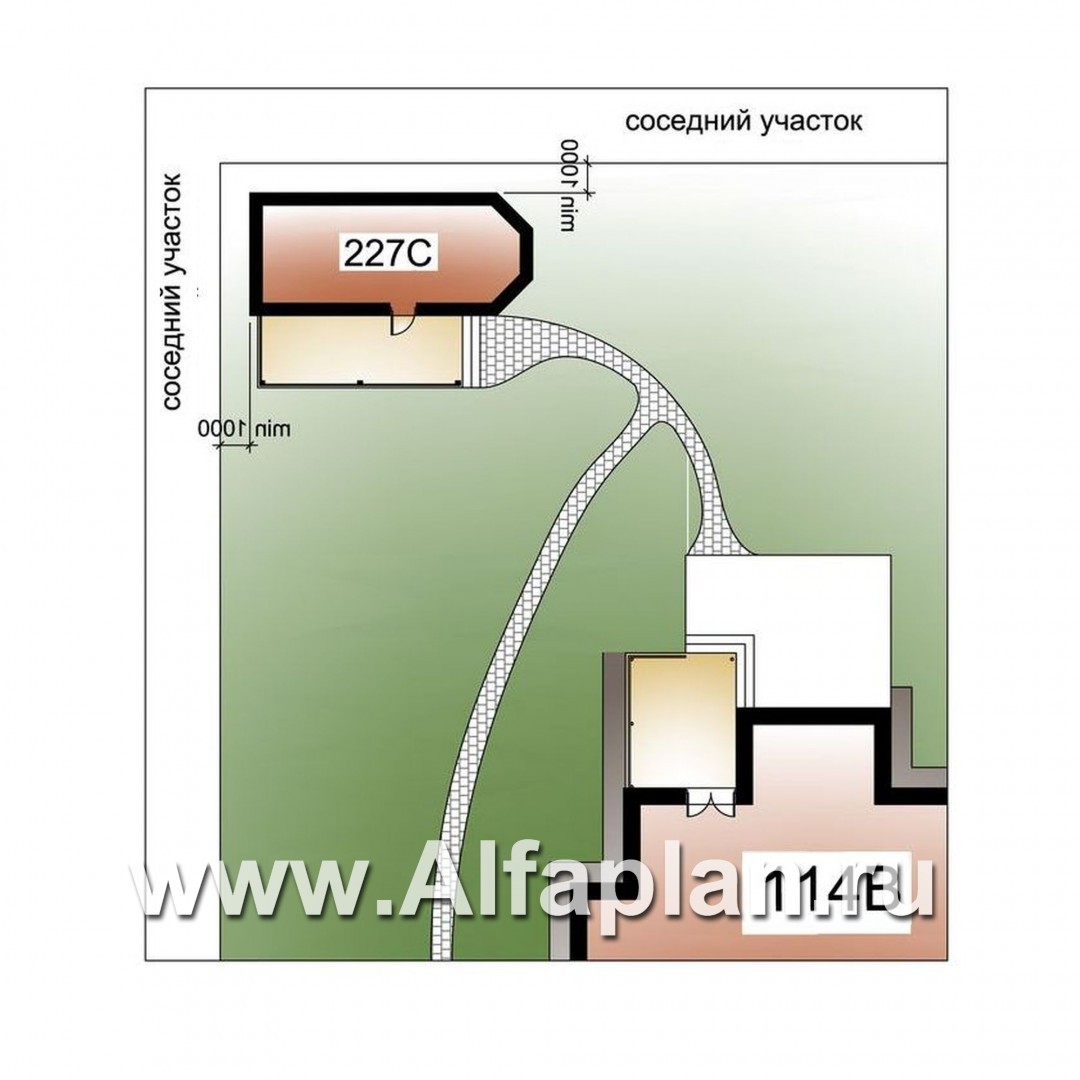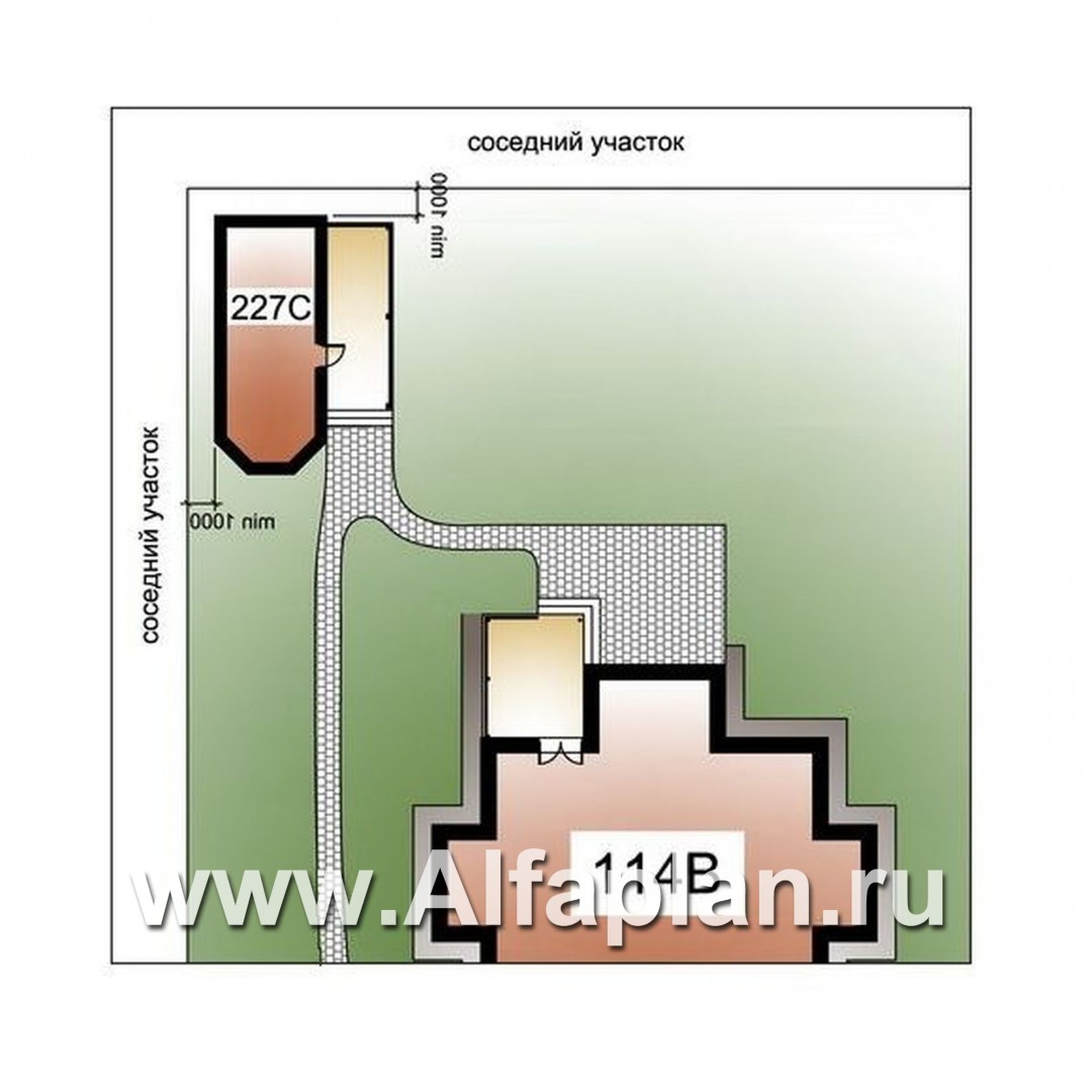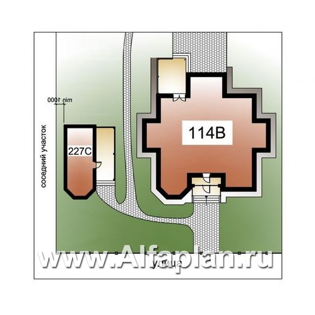 114B+227C-S «Воронцов»_ДУО - проект двухэтажного коттеджа с эркером + проект бани с эркером и с террасой
