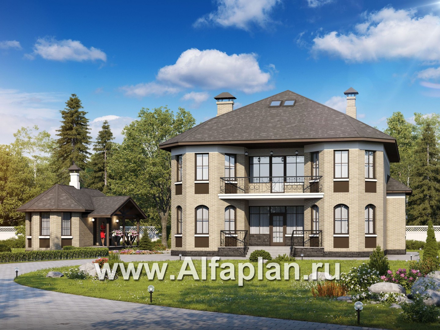 «Рюрик»_ДУО - проект двухэтажного коттеджа в стиле замка + проект бани с эркером и с террасой