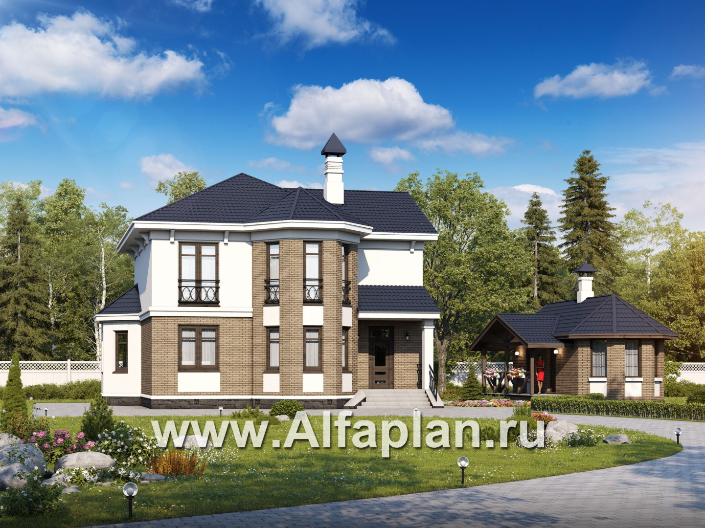 «Классика»_ДУО - проект двухэтажного коттеджа с эркером + проект бани с эркером и с террасой