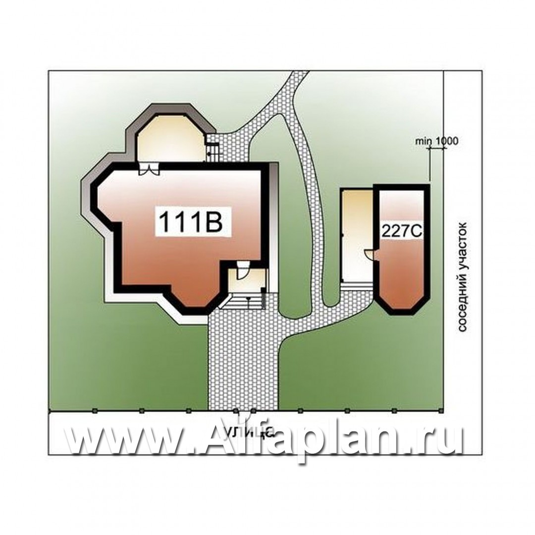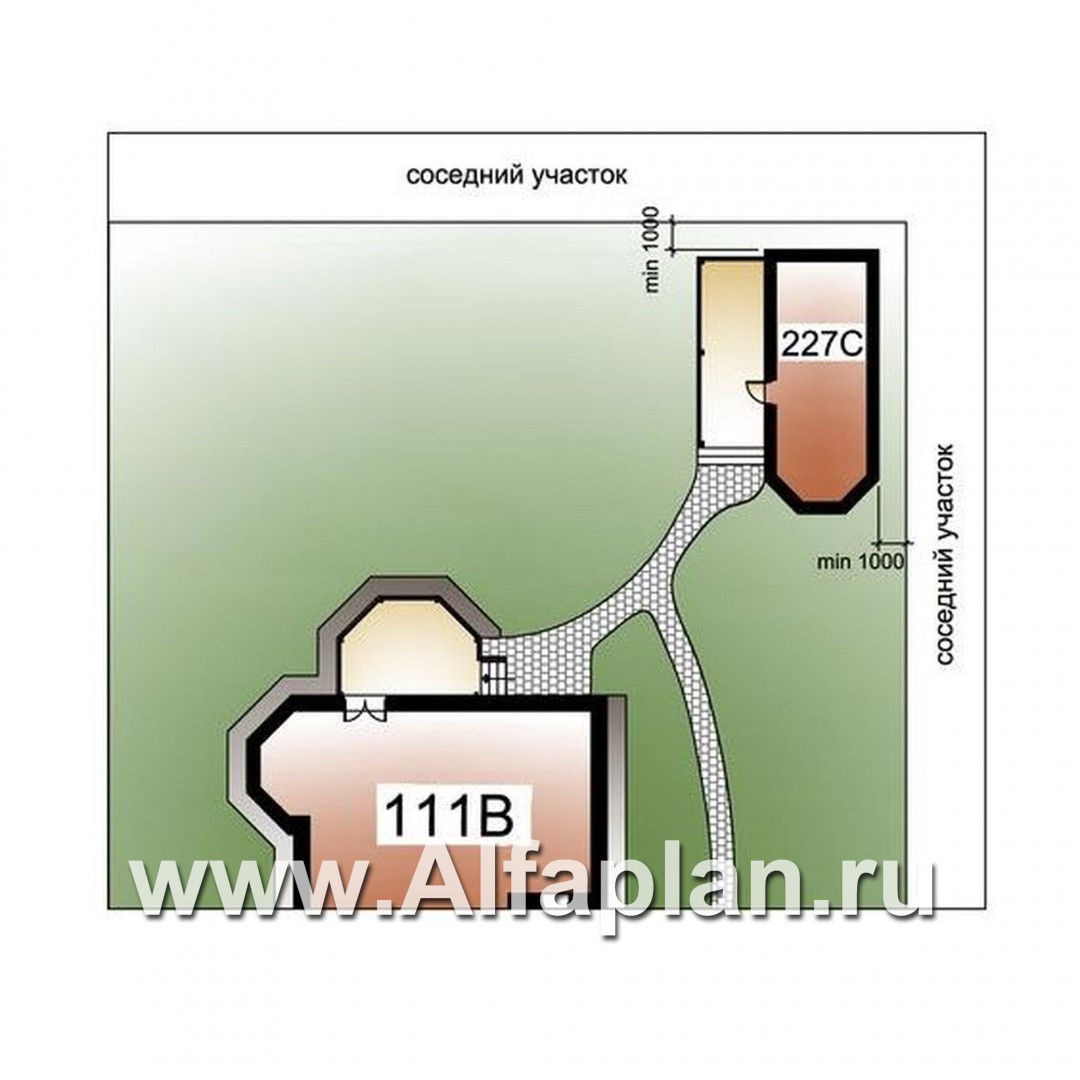 111B+227C-S «Классика»_ДУО - проект двухэтажного коттеджа с эркером + проект бани с эркером и с террасой