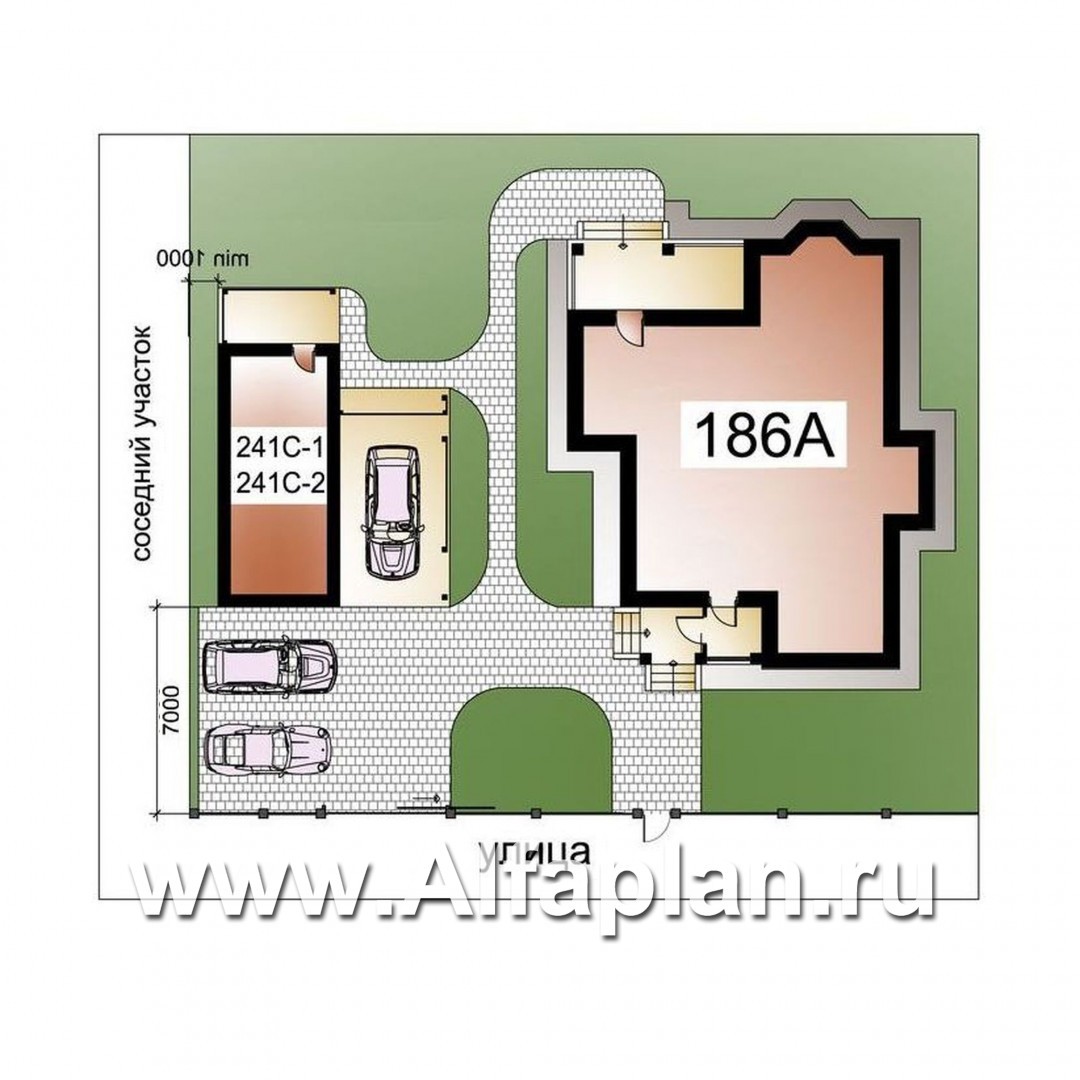 186A+241C-2-S «Белоостров»_ДУО - проект двухэтажного коттеджа с террасой + проект бани с навесом на 1 авто