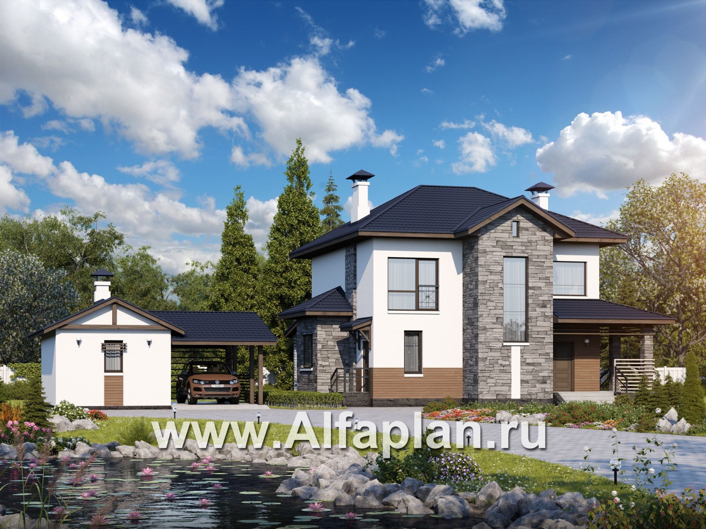 Светлое здание площадью 185,08 м2 на монолитном плиточном фундаменте станет вашей крепостью. Кровля из битумной черепицы защитит от холода, ветра и дождей. А изящная облицовка из светло-серого камня и декоративной штукатурки отвечает за эстетику и напоминает: зима — это очень чудесное время года!