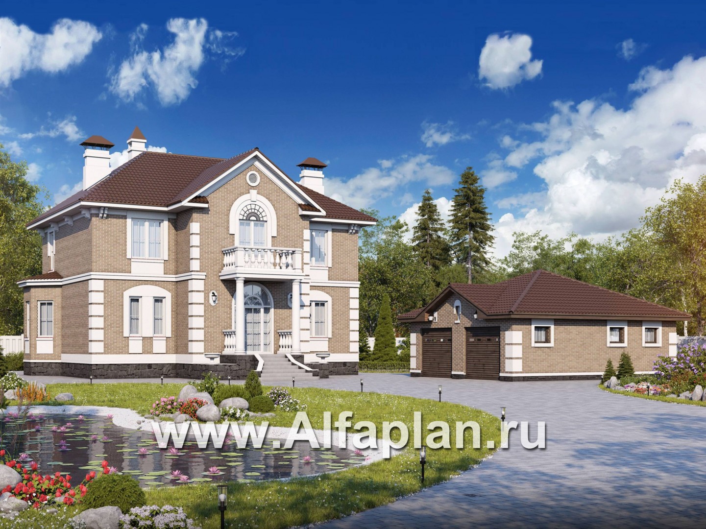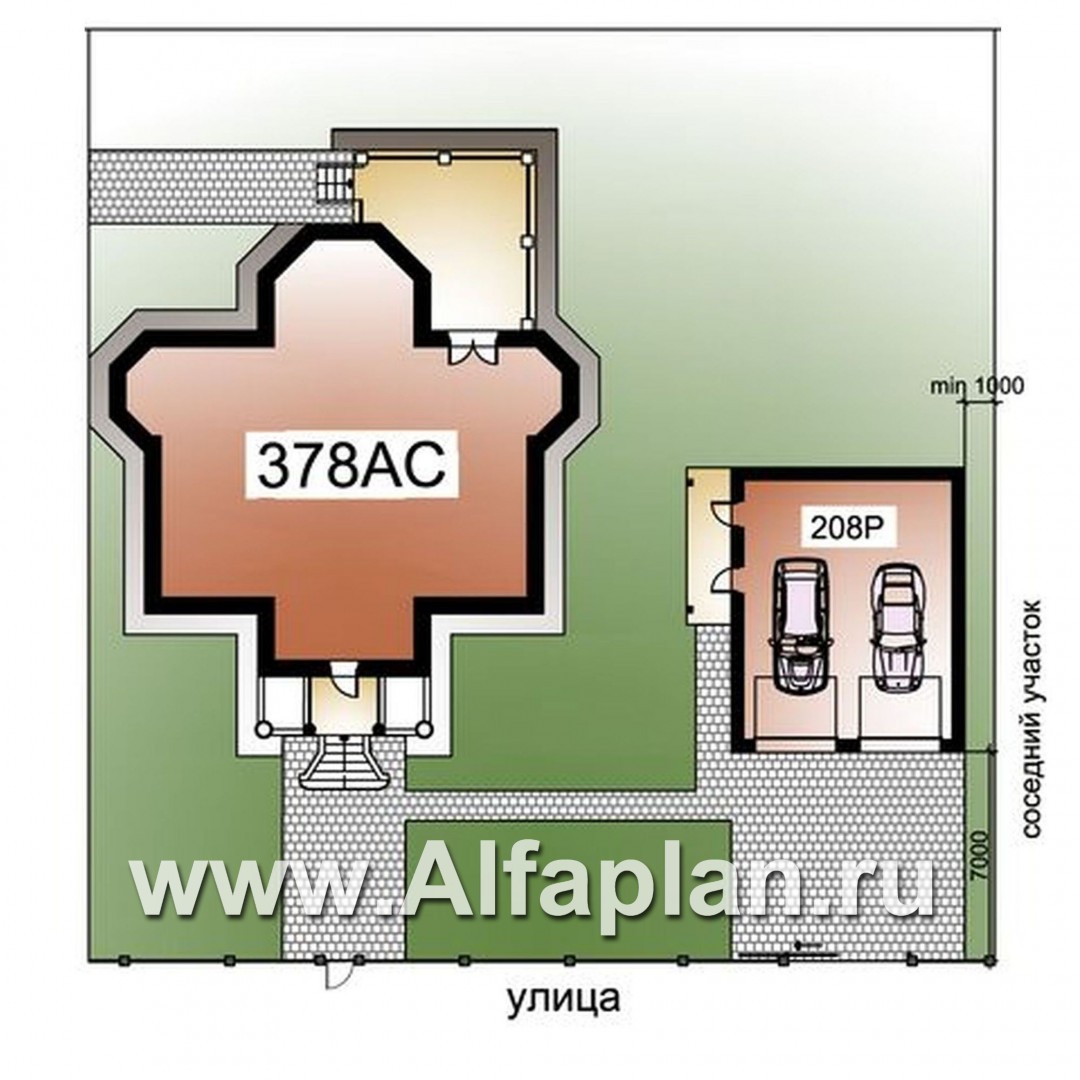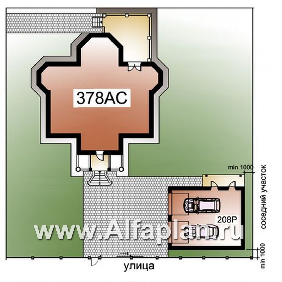 378AC+208P-2 «Головин плюс»_ДУО - проект двухэтажного дома из газобетона + гараж на 2 авто